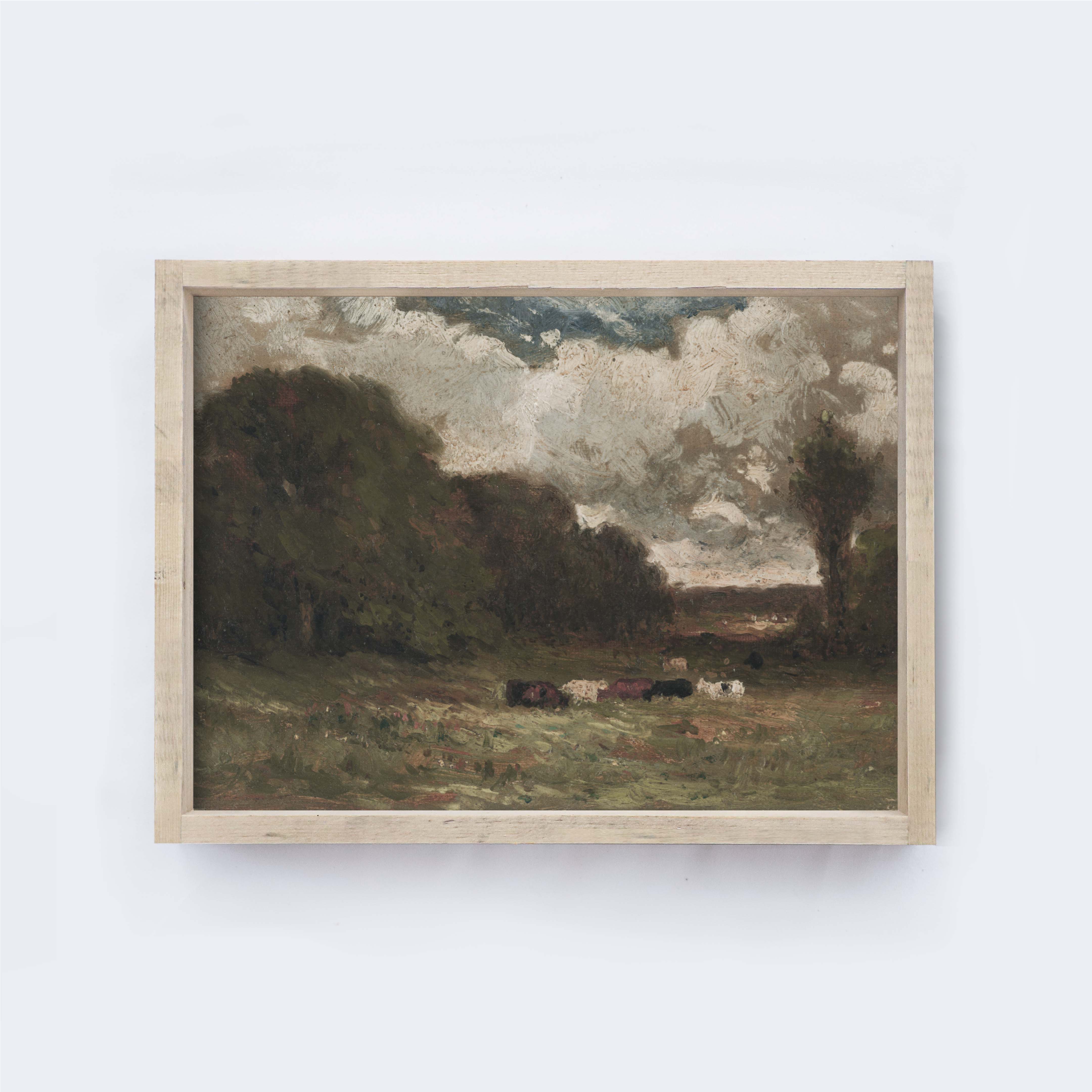 Vintage Pasture And Cows Landscape Painting A290