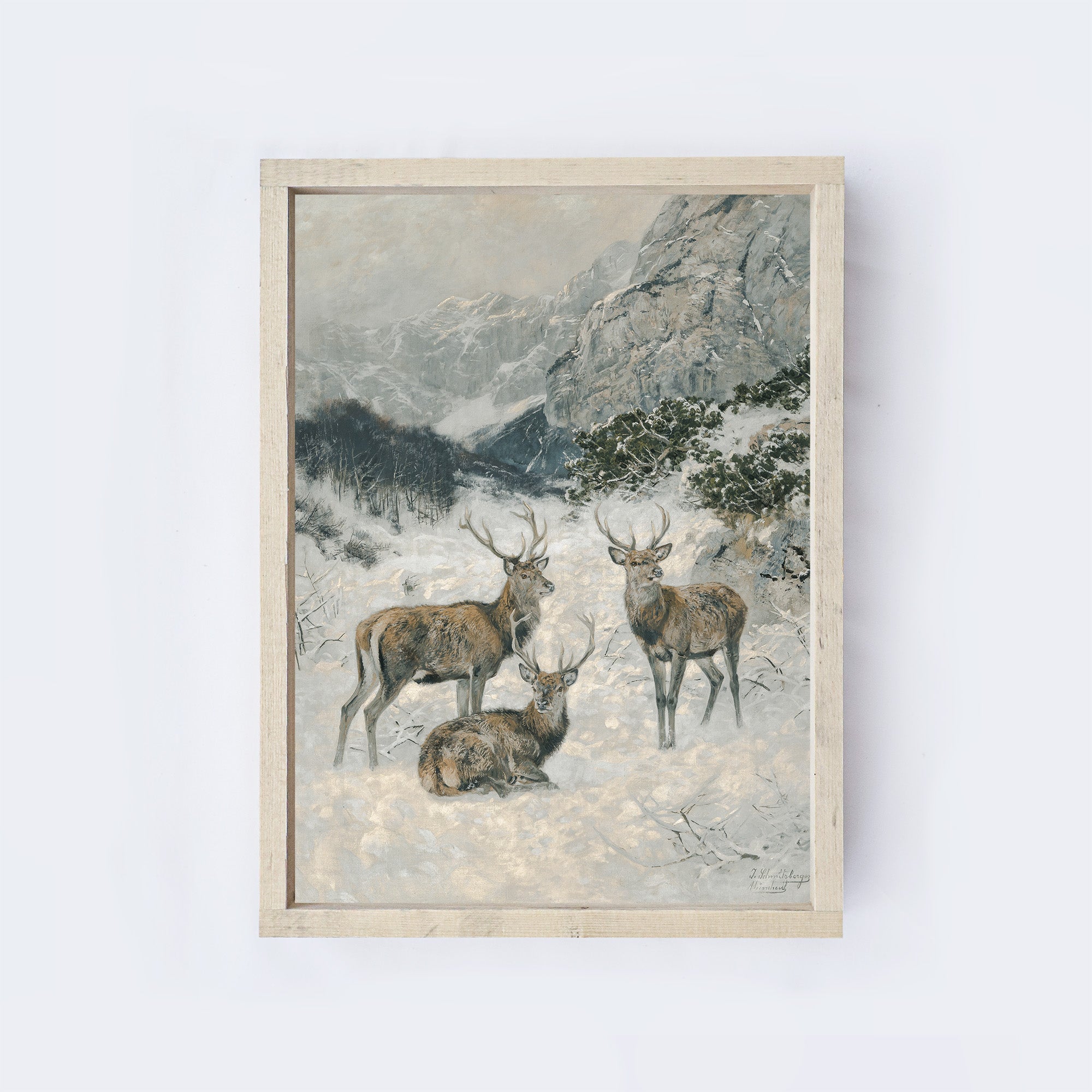 Vintage Print Framed | Deer In The Winter A82